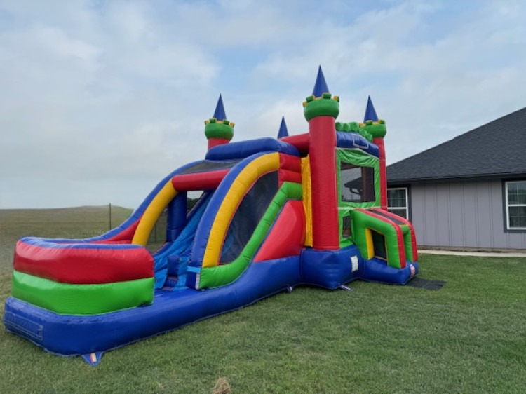 Select whether you'd like your combo or slide set up as a wet or dry attraction. Wet setups require a garden hose connection; dry setups come without water. Available for select inflatables.
