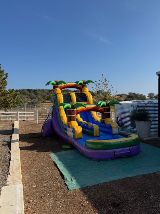 Turn your party into a mini tropical getaway with the Tropical Plunge Slide! This vibrant inflatable features palm trees, ocean-blue accents, and an exciting slide kids will ride again and again. Perfect for warm-weather parties and summer celebrations in Kerrville and the Hill Country.